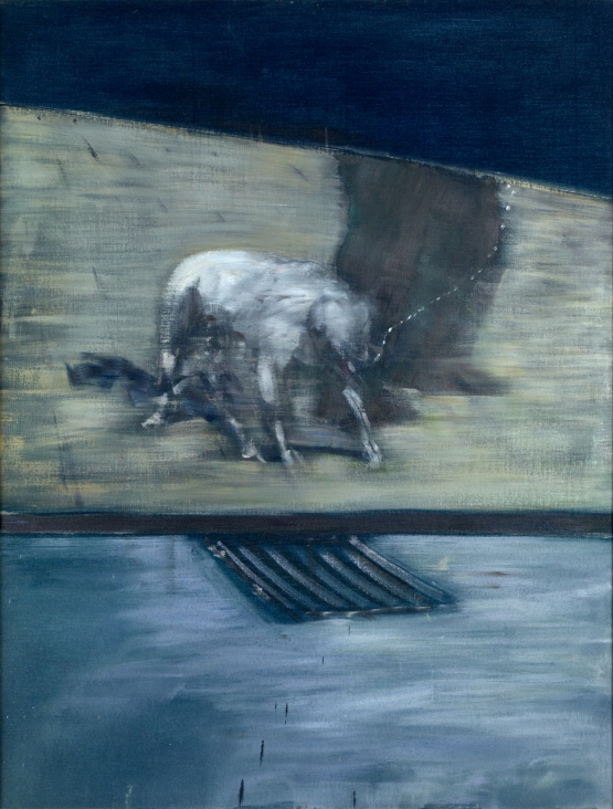 Francis Bacon was an Irish-born British figurative painter known for his emotionally charged raw imagery and fixation on personal motifs. Best known for his depictions of popes, crucifixions and portraits of close friends, his abstracted figures are typically isolated in geometrical cages which give them vague 3D depth, set against flat, nondescript backgrounds. [